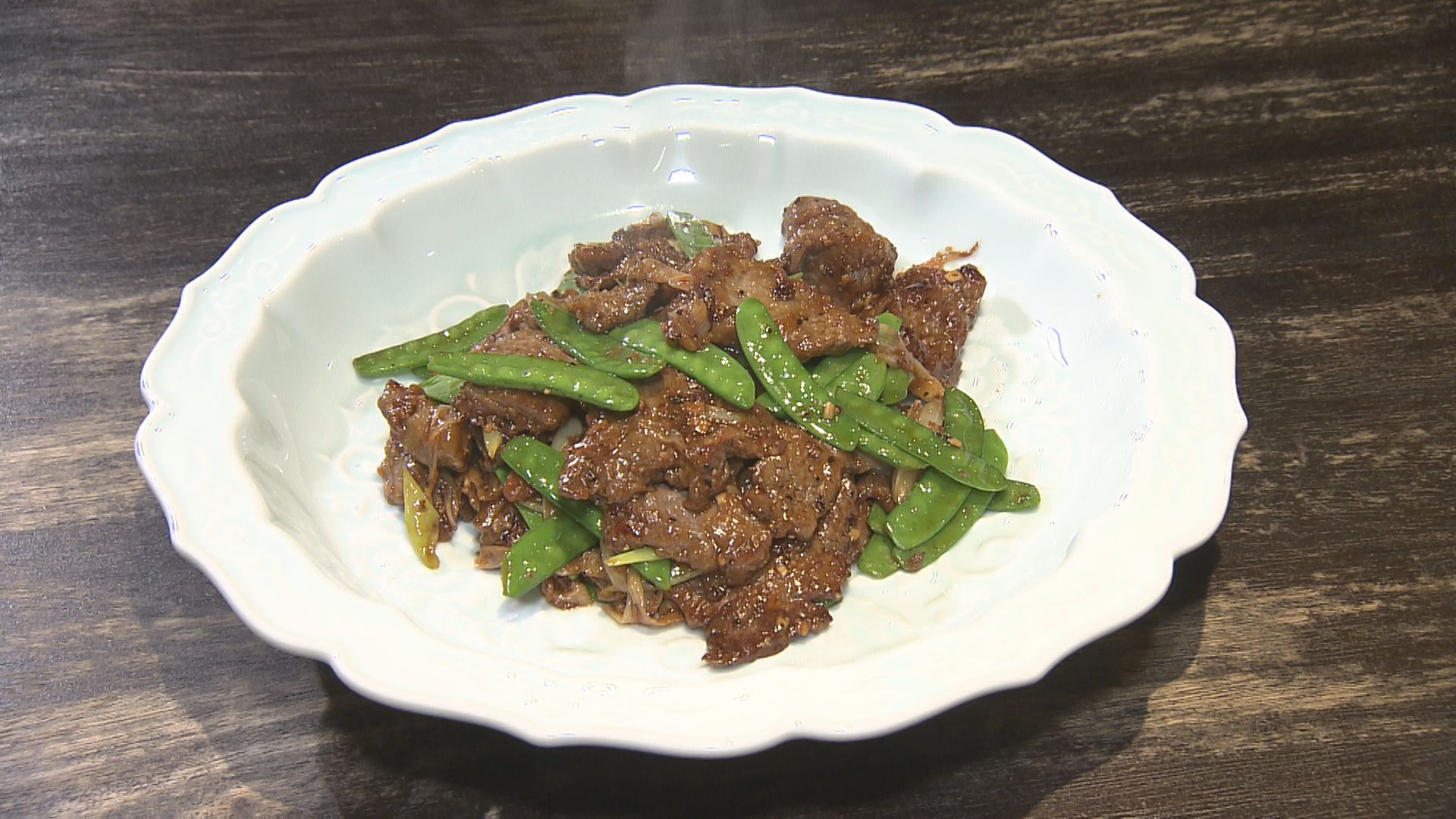 「黒椒荷蘭豆牛肉(ヘイジャオハーランドウニウロウ)」(11月29日放送分)
