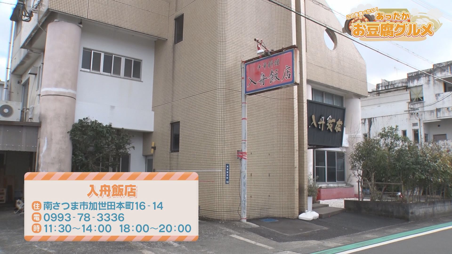 寒い冬、あったかグルメを味わいたいと宮内ありさリポーターが訪れたのは、薩摩川内市の「大豆の華」。 薩摩川内市で60年以上豆腐作りを続ける「くすもと食品」の直営店です。 人気なのが、お食事を頼んだ人が楽しめる、湯豆腐と湯葉の食べ放題。 湯豆腐は2種類用意されていて、宮内リポーターも「それぞれ全然違う!」と豆腐の奥深さにびっくりしていました。 続いて訪れたのは、南さつま市の老舗「入舟飯店」。 店主の馬籠秀道さんは3代目です。 宮内リポーターの目の前にグツグツと音をたてて現れたのが「石鍋麻婆豆腐」(1,100円)。 10種類以上の香辛料や自家製ラー油を使ったこだわりの麻婆豆腐を、アツアツの石鍋で提供します。 宮内リポーターも「ご飯ほしい!」と夢中で食べていました。 あったかお豆腐で冬の寒さを乗り越えましょう!