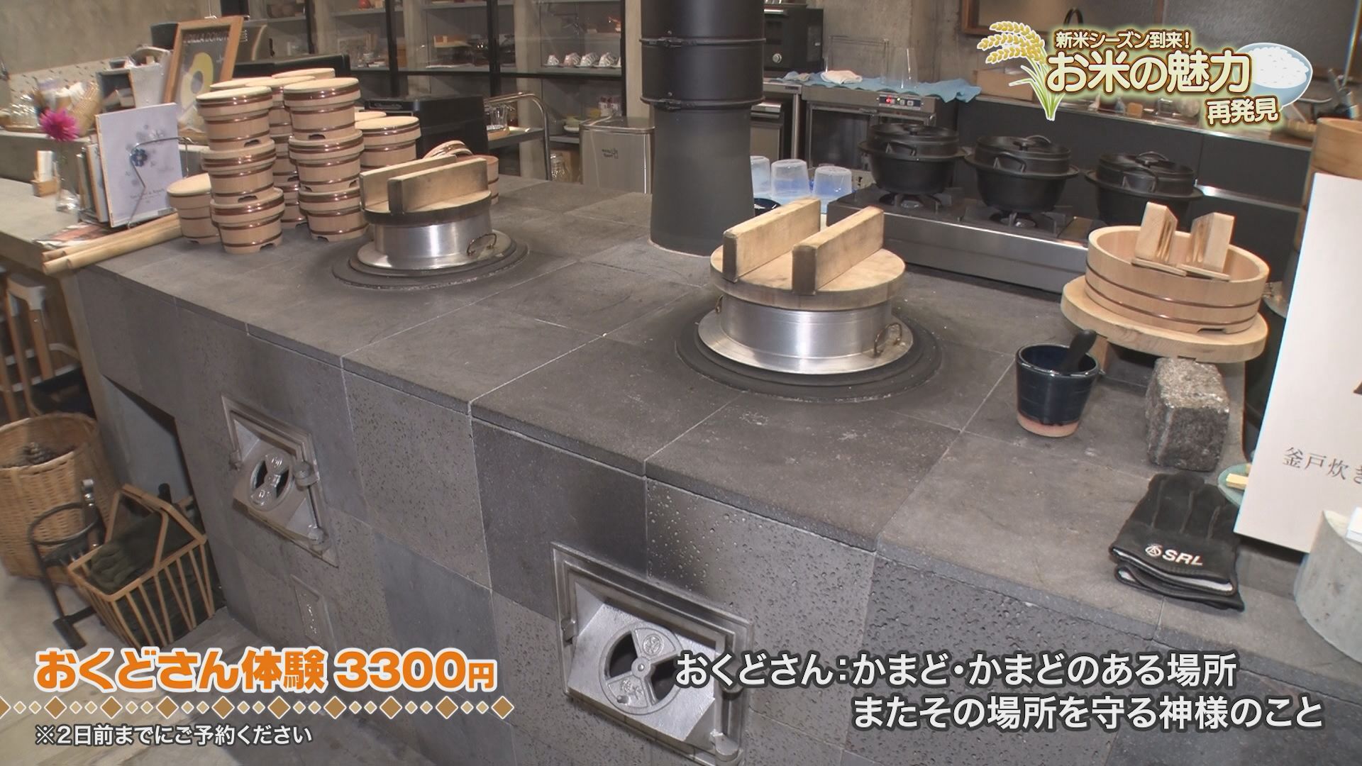 新米の季節がやってきましたね。 おいしいお米を求めて久木崎みなみリポーターが訪れたのは、薩摩川内市の「ライススタイルショップハラダ」。 お米に関する選りすぐりのグッズや、ご飯のお供、全国各地から厳然したお米が並ぶ、まさにお米に関する専門店です。 ここで挑戦するのが「おくどさん体験」(3,300円、2日前までの要予約)といって、精米からかまどでの炊飯、そして炊き立てのお米を味わうまでを体験できるものです。 かまどに息を吹き込む火起こしは「結構体力勝負ですね…」と汗をかいた久木崎リポーターでしたが、炊きあがったツヤツヤのお米に大興奮! さっそくお茶碗によそって一口食べると「ふっくら、お米ってこんなにおいしいんだ」と感動した様子でした。 もち米もおいしい季節ということで、続いて訪れたのは鹿児島市の「結び芽」。 日替わりの豊富なおかずに、6種類のおこわを自由に組み合わせられるスタイルが人気です。 おこわに使うもち米は、前日に5時間以上かけて吸水させ、それをせいろで蒸すことで、ふっくらとした仕上がりになるんだそうです。 久木崎リポーターがチョイスしたのは、定番のハンバーグに人気の鶏おこわ・季節限定の栗おこわを半分ずつの組み合わせ。 「もちもち・ムチムチとした食感が良い」と思わず笑みがこぼれます。 どちらも、手間暇をかけることで、お米の魅力と向き合うことができるお店でした。