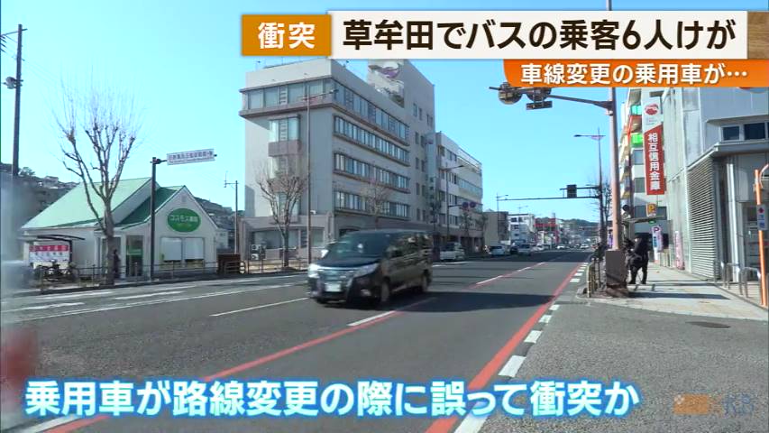 衝突 草牟田でバスの乗客6人けが 車線変更の乗用車が…