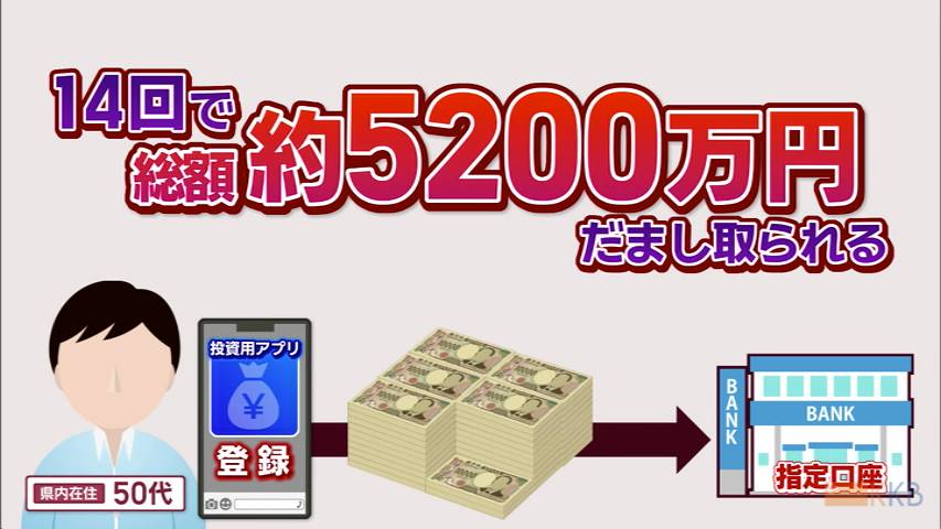 SNSを悪用した投資詐欺で、鹿児島県内の50代男性がおよそ5200万円をだましとられました。警察によりま・・・
