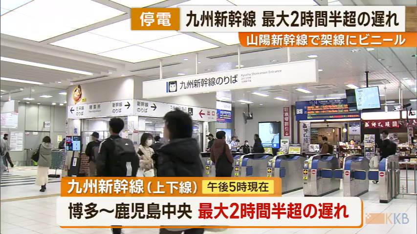 13日午前、山陽新幹線の小倉駅構内で発生した停電の影響で、九州新幹線も最大2時間半を超える遅れが続いています。<・・・