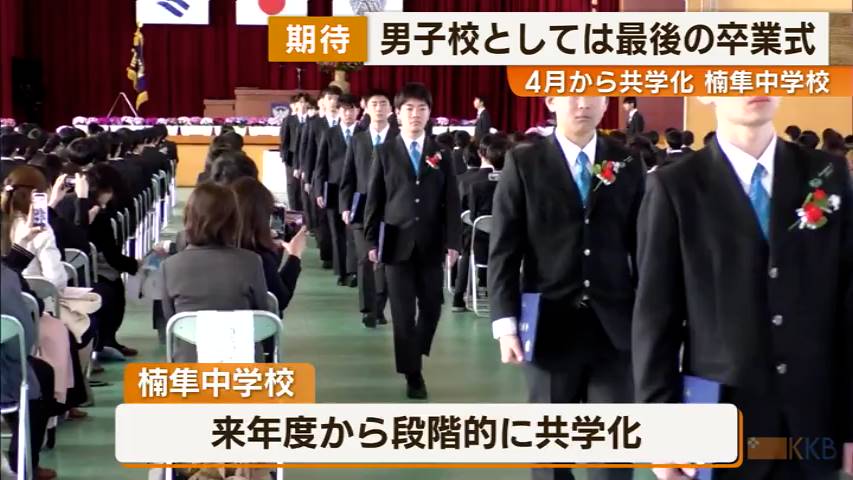 男子校としては最後の卒業式 4月から共学化 楠隼中学校