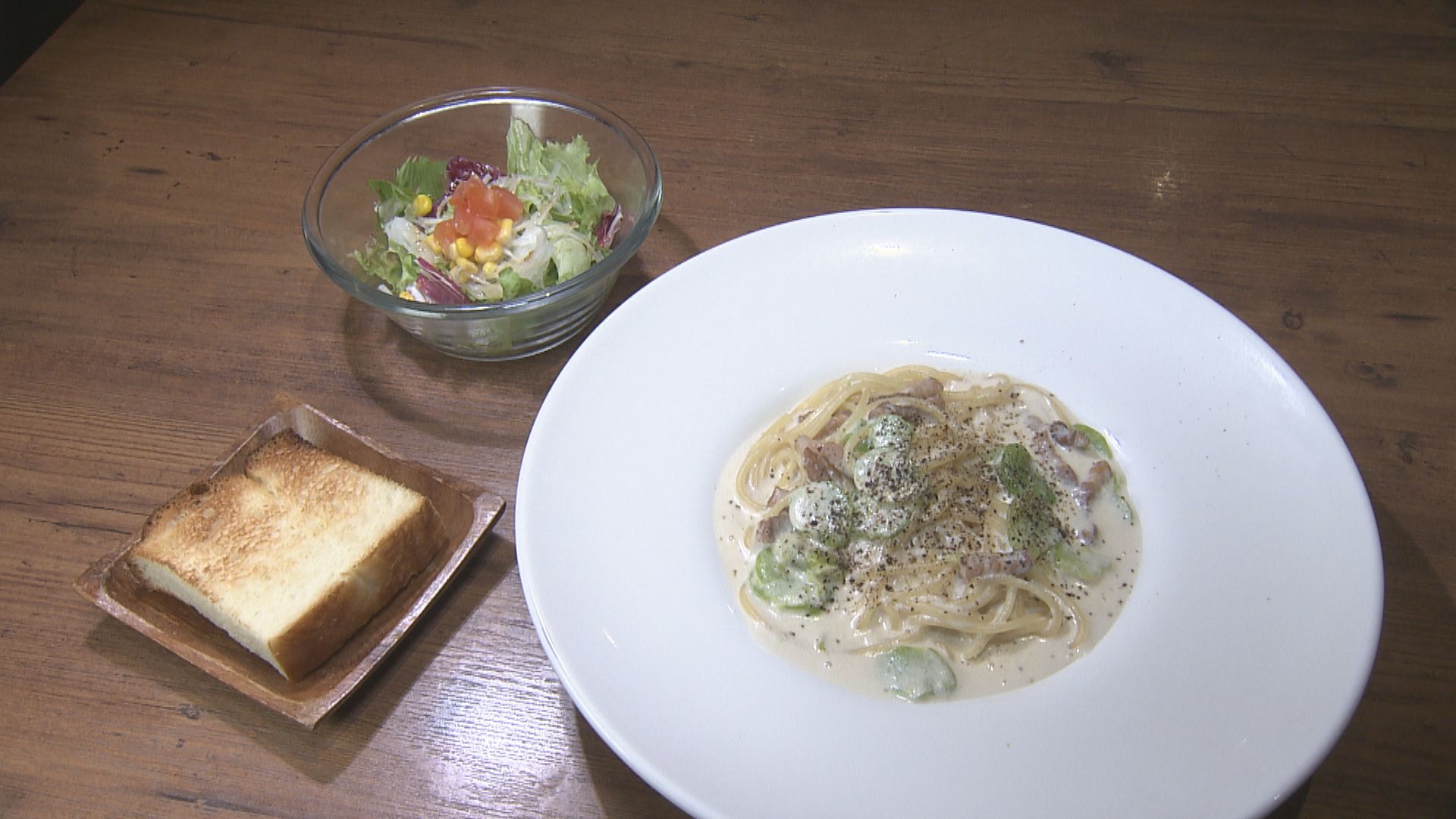 □パンチェッタとソラマメのクリームソース 1700円 □ホタルイカと菜の花のオイルソース 1500円 ※ランチメニュー(サラダorスープ、パン、ドリンク、デザート付き)